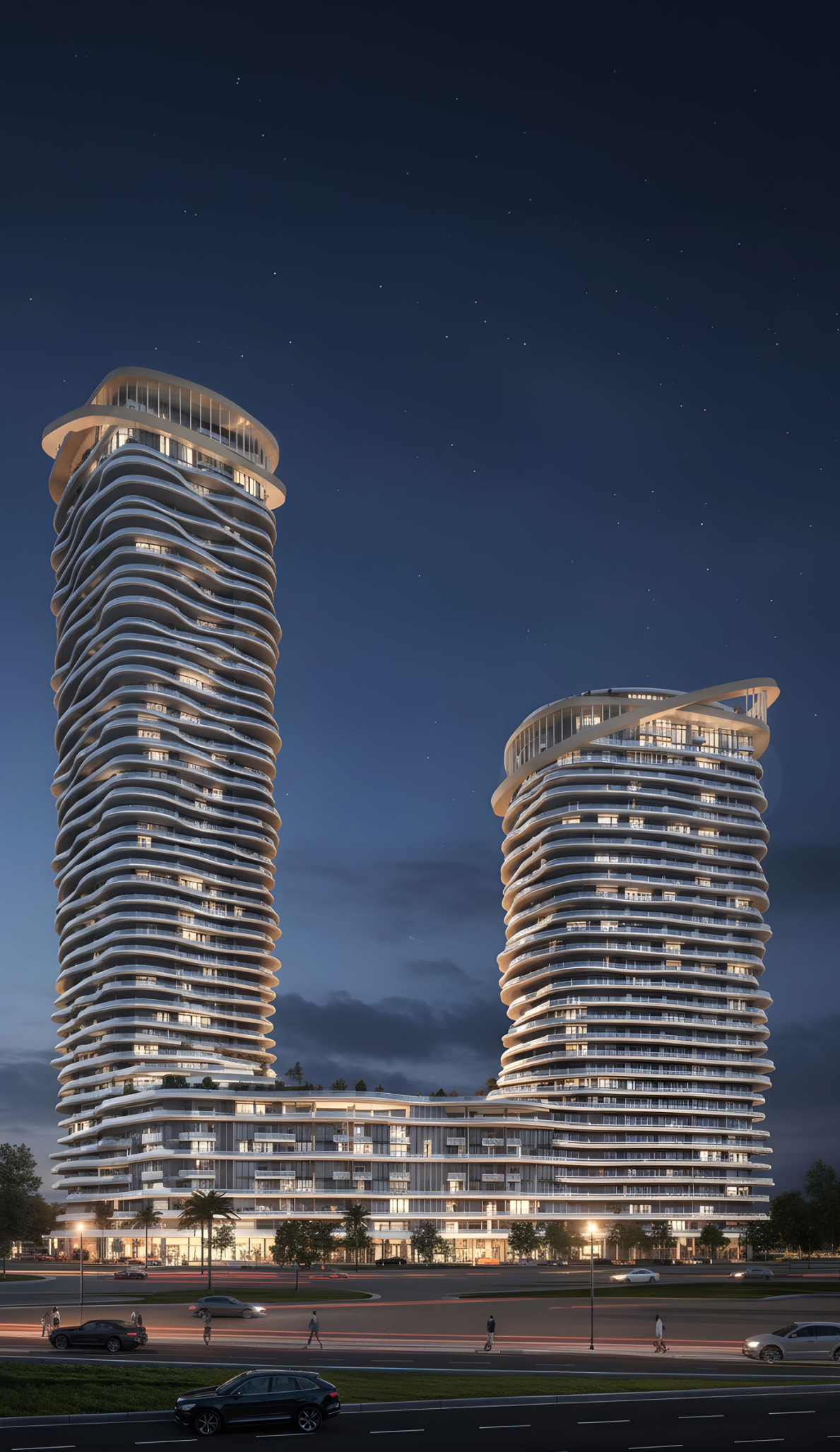 Marina Twin Towers is a dual-tower residential development in Lusail City, featuring 47 and 27 floors of modern apartments with panoramic views, premium amenities, smart technologies, and eco-friendly design for an elevated urban lifestyle.